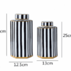 Introducing the Ceramic Jar Geometric Black and White Stripes with cover. Crafted with precision and attention to detail, this ceramic jar combines functionality with aesthetic appeal to enhance any space. Whether used as a storage vessel, a flower vase, or simply as a decorative accent, this piece will elevate your home’s ambiance.